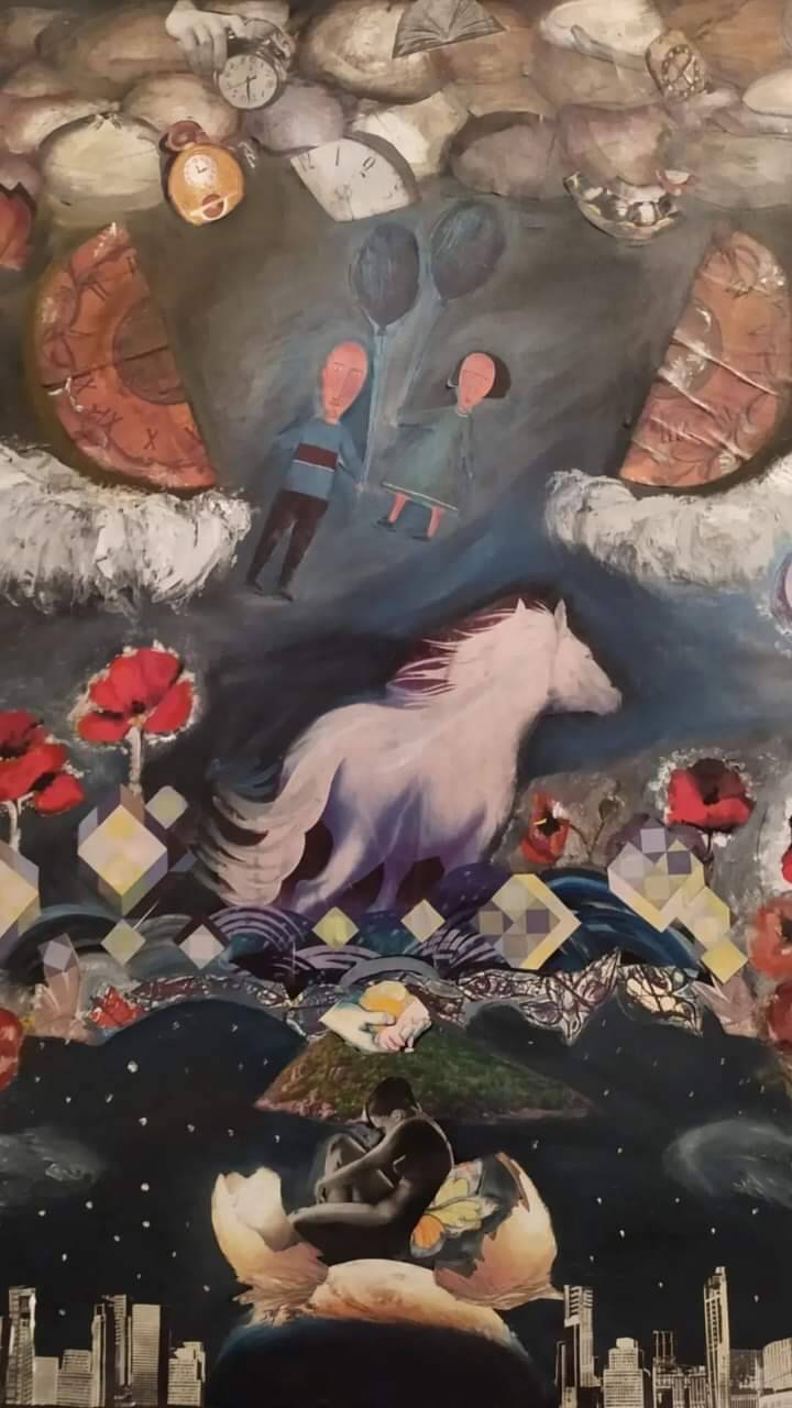 Il 2018 rappresenta un momento di profonda trasformazione personale, segnando un periodo di cambiamenti radicali e sconvolgimenti. In seguito a un grave incidente, l'artista affronta una lunga fase di immobilità e totale oscurità, durante la quale dà vita al “collage pittorico”, il suo unico strumento per placare la sete d’espressione artistica. Attraverso questo processo creativo, riesce a fondere le sue passioni più grandi dando origine a opere complesse e cariche di significato. Tra queste si distingue "Le Sacre Scritture", opera principale di una serie composta da altre nove creazioni, ciascuna ispirata a racconti biblici. Con uno stile marcatamente surrealista, queste opere innovano il linguaggio artistico dell’autrice, evidenziando il suo talento e segnando un netto distacco dalle tradizionali pratiche paesaggistiche e figurative.