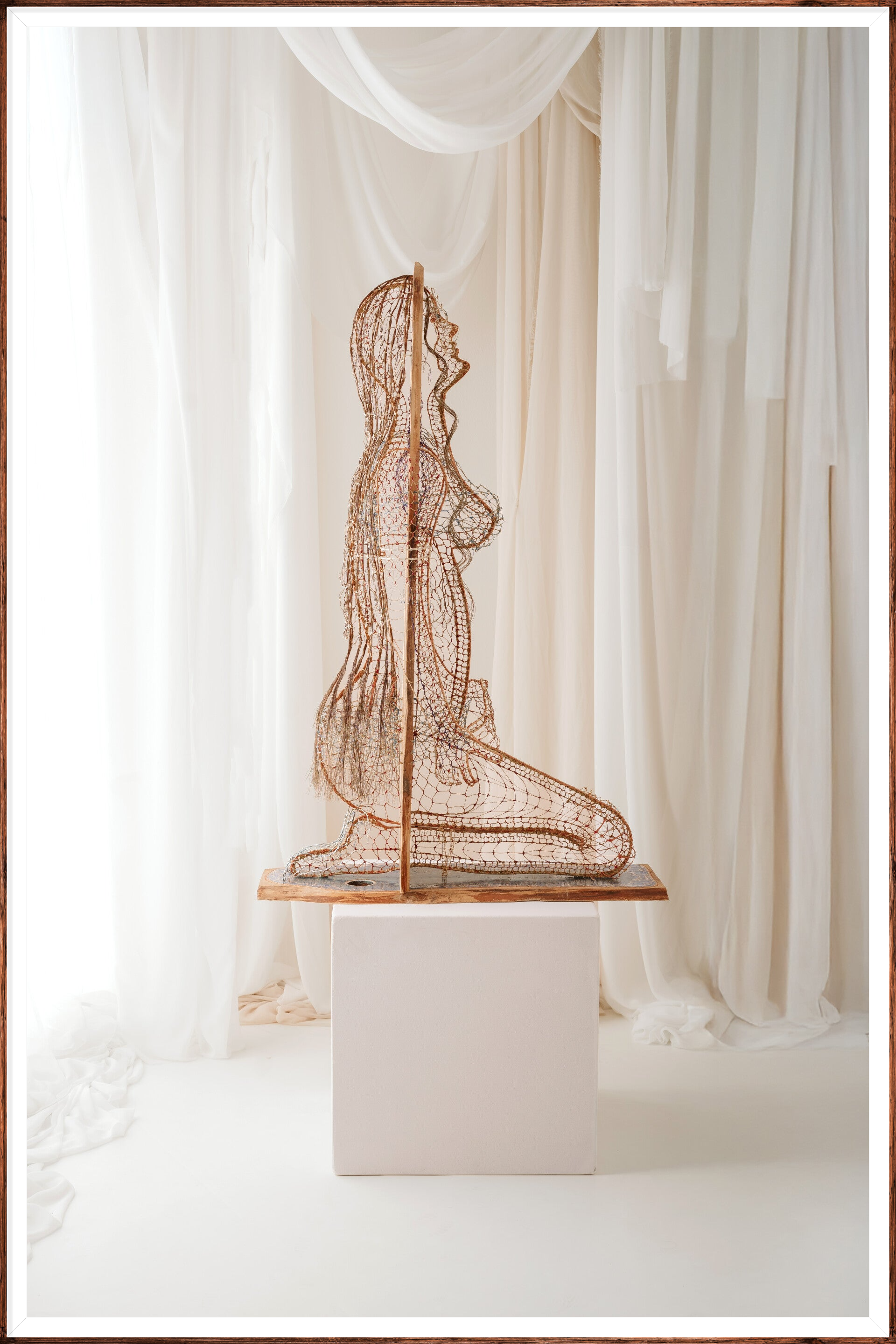Opere come Venice rendono evidente questa tensione tra corporeità e dimensione archetipica. La figura femminile, priva di connotazioni etniche, si configura come presenza universale. Il corpo diventa luogo simbolico attraversato dagli elementi primari: rosso come sangue, blu come acqua, marrone come terra, oro come anima. Venezia non è descritta, ma evocata come condizione esistenziale: fragile e resistente, radicata e sospesa. La maschera assume valore liberatorio; il cuore celato richiama la dimensione intuitiva; le mani proteggono ciò che deve ancora nascere. In questa sintesi simbolica si riflette l’intero impianto teorico dell’artista: l’Uno che si manifesta nel molteplice.