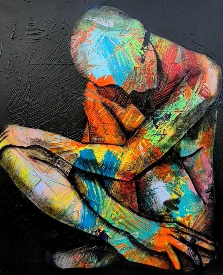 Poi è diventato un dialogo silenzioso con la mia fragilità, un modo per ascoltarla invece di combatterla. Ogni colore, ogni forma, mi restituisce qualcosa che credevo perduto. Così, tela dopo tela, la pittura è diventata la mia forma di guarigione più profonda. Non perché cancelli il dolore, ma perché gli dà una nuova forma attraverso cui trasformarsi. Gli dà un senso: dal nero emerge il colore, e in quella trasformazione nasce una forza che si rinnova, che evolve, che respira.